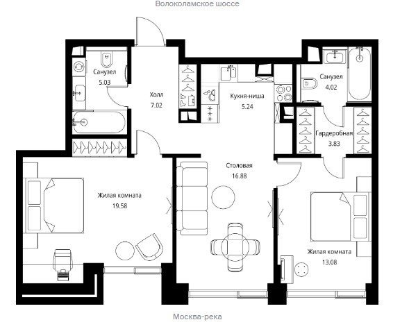 Площадь от 73.72 м2